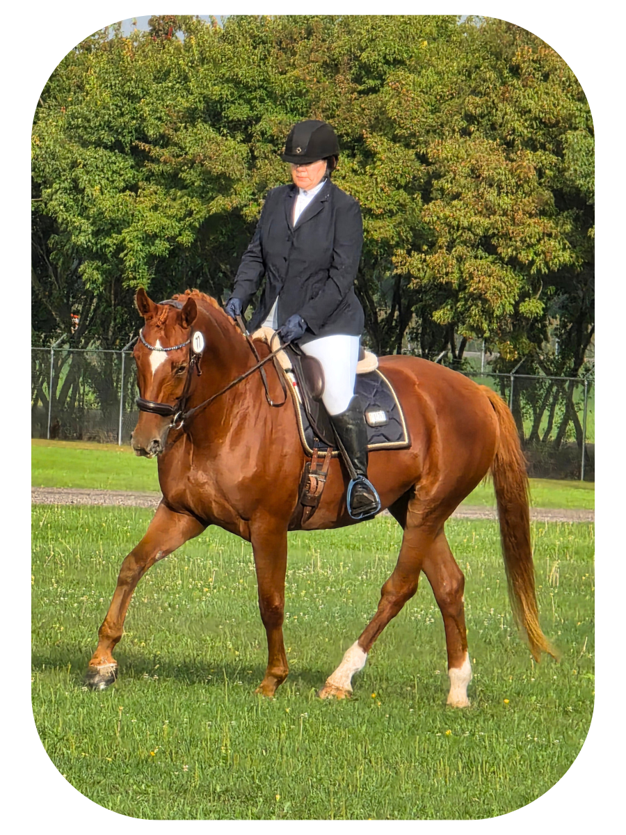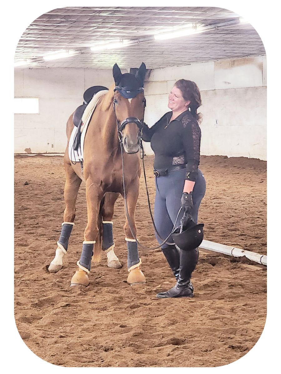 Shandra first climbed into the saddle at age 11 during a week at horse camp, and she’s been riding ever since. While Dressage is her greatest passion, she’s also enjoyed exploring english pleasure, hunt seat, saddleseat, and riding on her college equestrian team. In 2023, with Jennifer’s guidance, she found and purchased her first horse, Fuerst Diamante “Mante,” and has been happily growing her skills and partnership ever since.